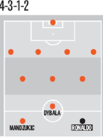 4-3-1-2 – Volendo valorizzare un talento come Dybala, visto che il primo indiziato per la partenza sembra essere Higuain, si potrebbe optare anche per un 4-3-1-2, con l’argentino alle spalle dello stesso Cristiano Ronaldo e di un Mandzukic preziosissimo per l’allenatore toscano.