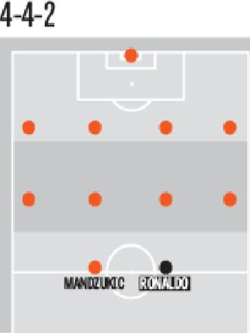 4-4-2 – C’è poi un’ipotesi classica, quella del 4-4-2, in cui Cristiano Ronaldo potrebbe essere affiancato da uno tra Mandzukic e Dybala, a seconda del tipo di avversario che si affronta. A quel punto le due ali più offensive potrebbero essere anche Douglas Costa e Cuadrado.