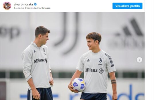 Morata ricambia la foto con l’amico Dybala: in allenamento felici insieme (Foto)